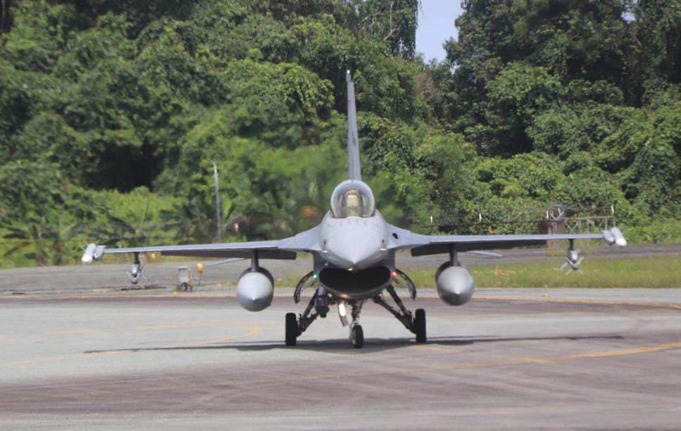 Kaltimkita.com, BALIKPAPAN - Rabu (1/9/2021) siang, satu flight Pesawat Tempur F-16 menghiasi langit Kota Balikpapan. Pesawat tempur canggih tersebut kemudian landing di Base Ops Lanud Dhomber Balikpapan.