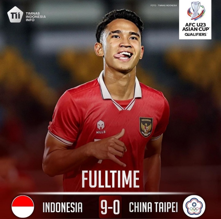 Kaltimkita.com, JAKARTA – Timnas Indonesia U-23 berpesta gol ke gawang Chinese Taipei U-23 di Kualifikasi Piala Asia U-23 2024. Garuda Muda menang besar 9-0.