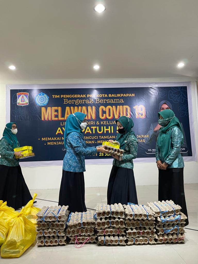 Kaltimkita.com, BALIKPAPAN - Tim penggerak Pemberdayaan Kesejahteraan Keluarga (PKK) Balikpapan melaksanakan kegiatan sosial yang bertajuk "Tim Penggerak PKK Kota Balikpapan bergerak bersama MELAWAN COVID-19, lindungi diri dan keluarga".