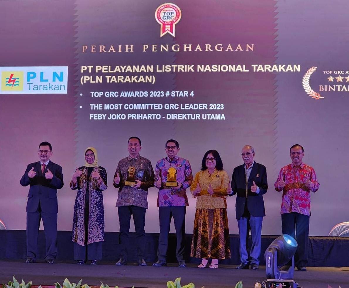 Dua penghargaan bergengsi yang berhasil diraih pada tahun ini yaitu TOP GRC 2023 bintang 4 untuk PT PLN Tarakan dan The Most Committed GRC Leader 2023 untuk Direktur Utama PT PLN Tarakan, Feby Joko Priharto.