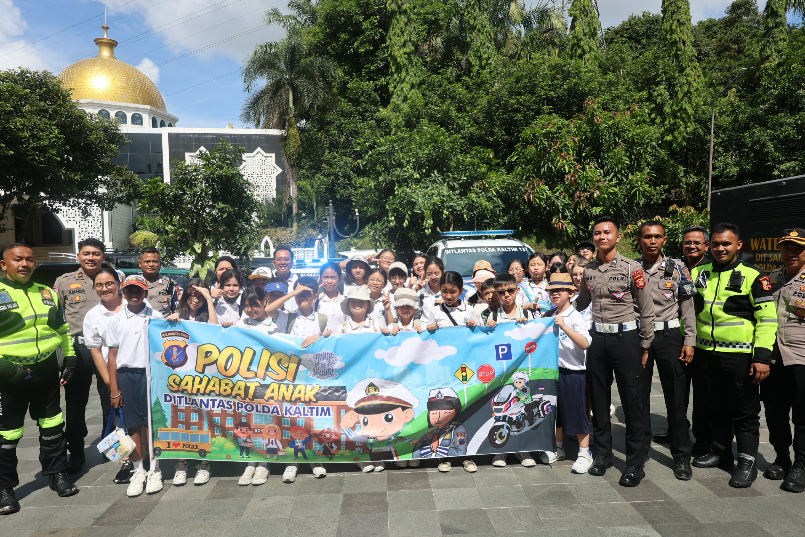 Kaltimkita.com BALIKPAPAN - Wujudkan program Polisi Sahabat Anak, Polda Kaltim menerima kunjungan murid siswa SD Bina Bangsa Balikpapan di Mapolda Kaltim, pada Jumat (15/11/2024).