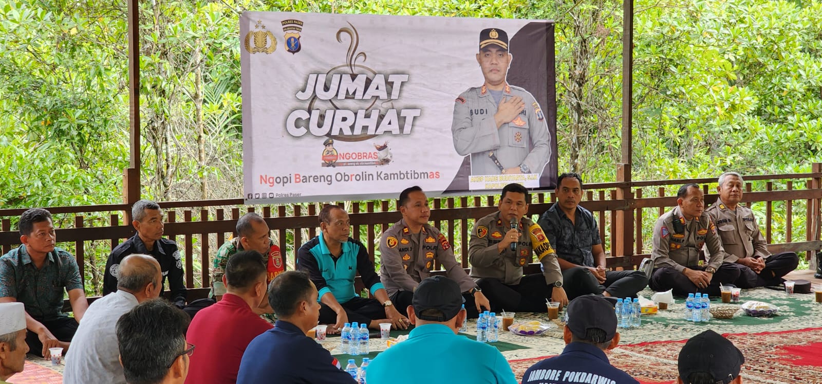 KaltimKita.com, TANA PASER - Banyak pertanyaan masyarakat yang terjawab saat giat Jum'at Curhat Obrolin Kamtibmas atau Ngobras Polres Paser di Desa Klempang Sari Kecamatan Kuaro.