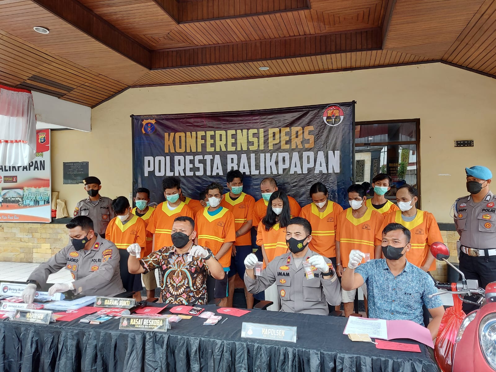 Kaltimkita.com, BALIKPAPAN - Selama bulan Mei 2022, jajara Polresta Balikpapan bersama Polsek jajaran berhasil mengungkap sebanyak 34 kasus narkotika. Hasil pengungkapan tersebut disampaikan Kasat Resnarkoba Polresta Balikpapan Kompol Roganda dalam konferensi pers yang digelar, Jumat (27/5/2022) siang.