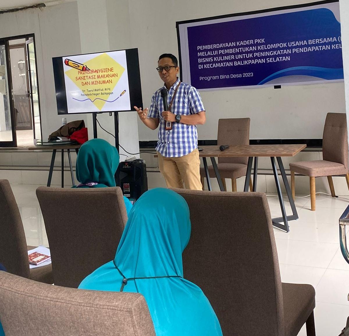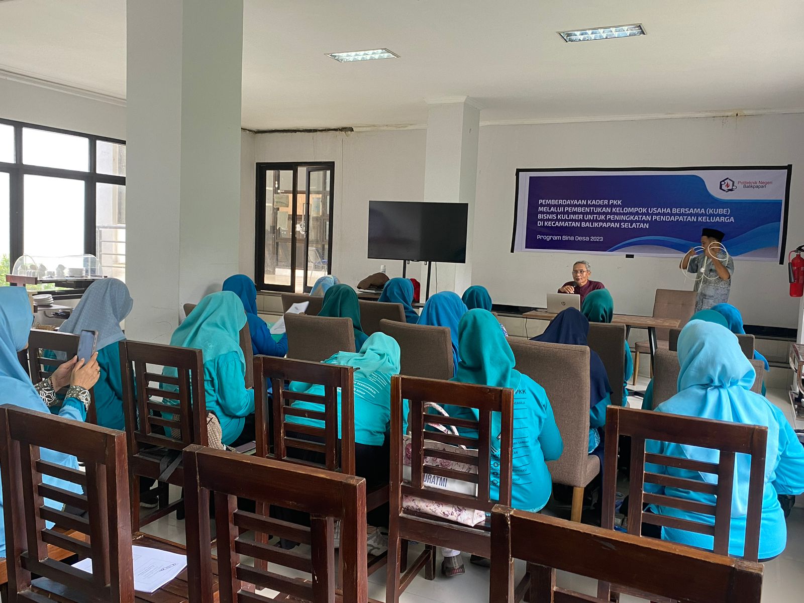 KaltimKita.com, BALIKPAPAN - Sabtu (10/6/2023) lalu, Politeknik Negeri Balikpapan melaksanakan penyuluhan ke Kecamatan Balikpapan Selatan. Penyuluhan ini berkaitan dengan pemberdayaan kader PKK melalui pembentukan Kelompok Usaha Bersama sebagai bisnis kuliner untuk pendapatan keluarga di Kecamatan Balikpapan Selatan.