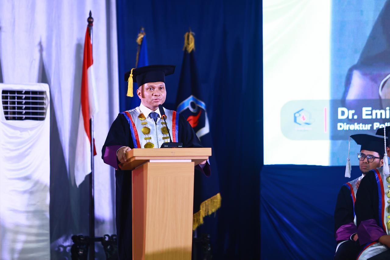 Dalam sambutannya, Direktur Poltekba, Dr. Emil Azmanajaya, S.T., M.T., mengatakan rasa syukur atas capaian kampus selama 23 tahun berdiri. Terlebih, tahun ini Poltekba mencetak sejarah baru dengan hadirnya guru besar pertama yang juga tercatat sebagai profesor termuda se-Politeknik Indonesia.
