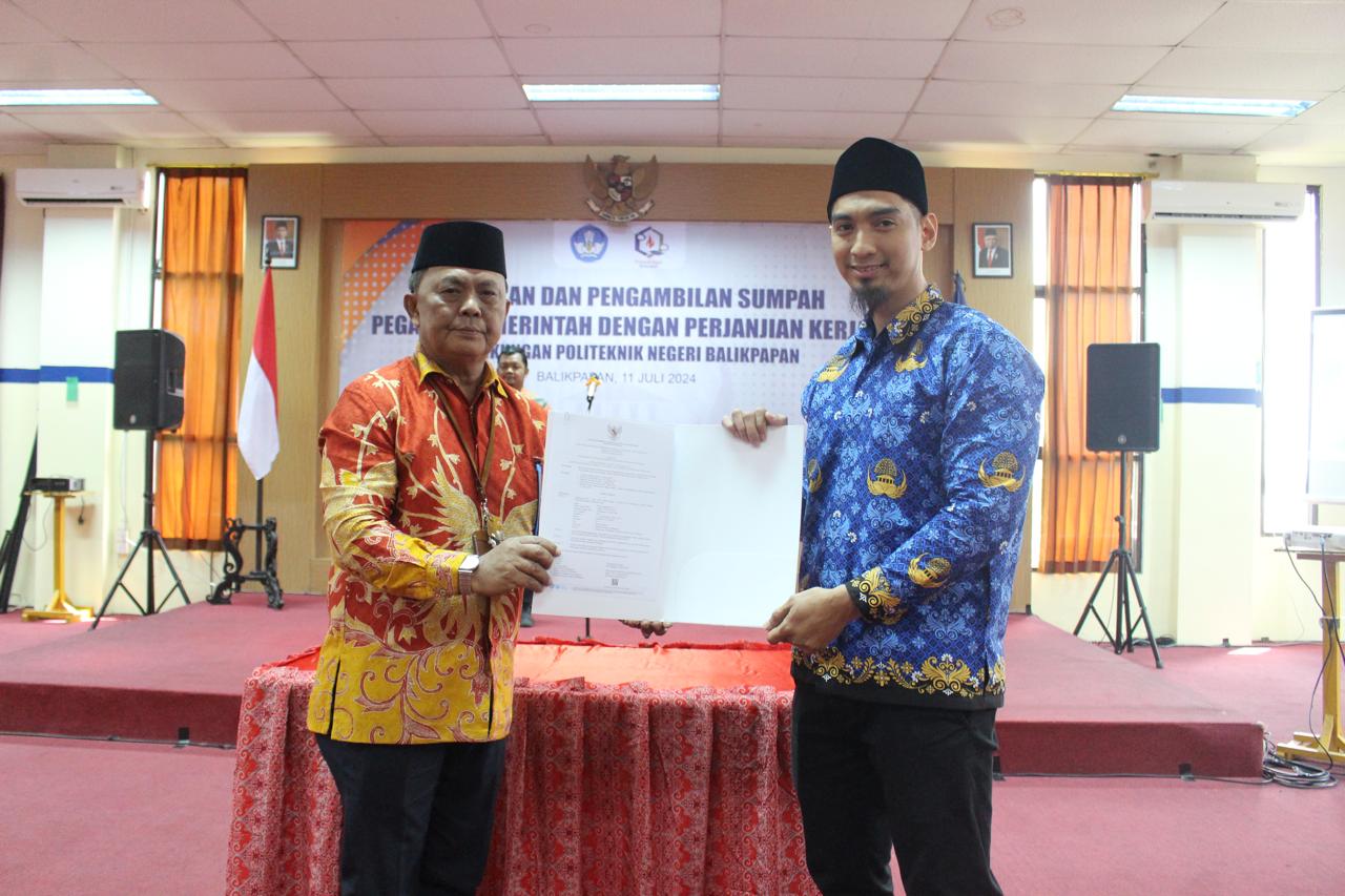 KaltimKita.com, BALIKPAPAN - Politeknik Negeri Balikpapan melantik lima Pegawai Pemerintah dengan Perjanjian Kerja (PPPK), Kamis (11/7/2024) di Lantai Tiga Gedung Direktorat. Kelima pegawai tersebut yakni satu Dosen Lektor, dua Dosen Asisten Ahli, satu Arsiparis Ahli Pertama dan satu Pranata Komputer Ahli Pertama.