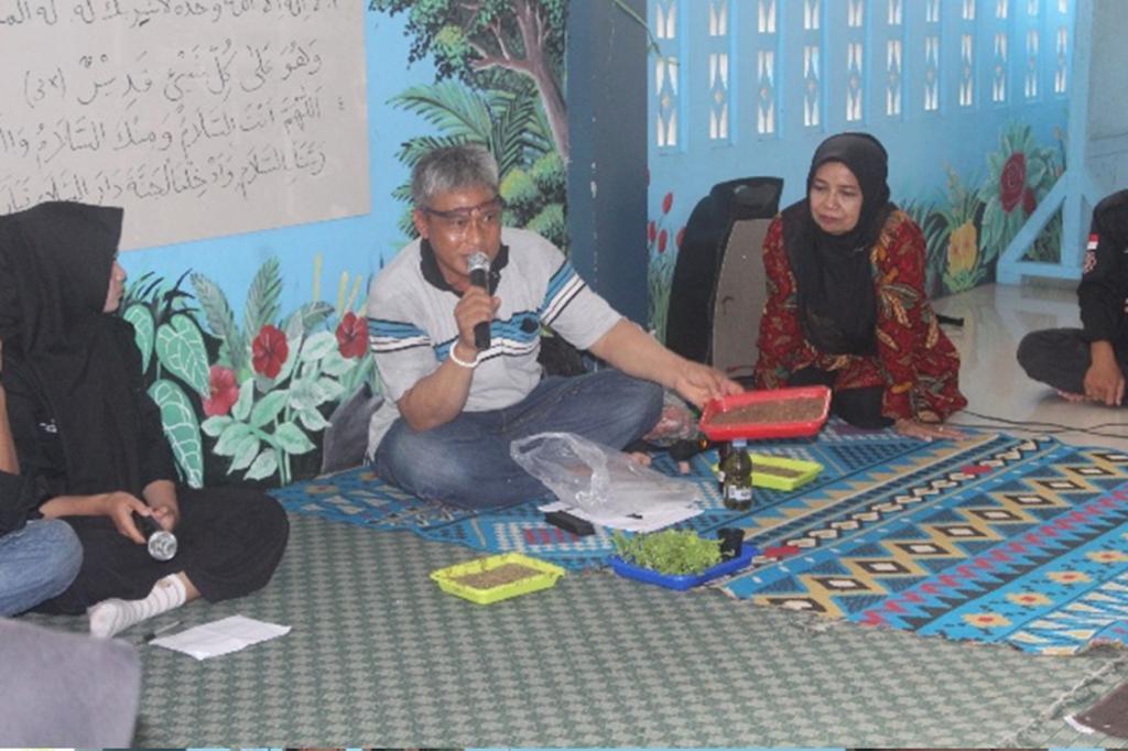 Praktik menyiapkan dan menanam tanaman hidroponik setelah pemaparan materi