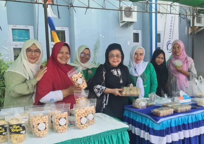 Pelaku usaha perempuan UMKM Kaltim dengan produk olahannya.