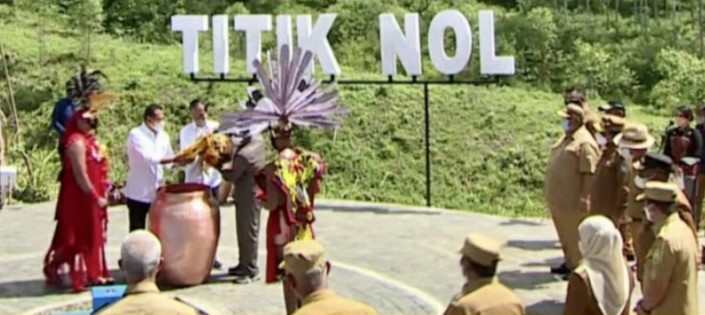 Kaltimkita.com, PENAJAM – Presiden RI Joko Widodo bersama Istri Iriana Joko Widodo dan Gubernur se Indonesia melakukan prosesi penyatuan tanah dan air kedalam kendi di Titik Nol Ibu Kota Negara (IKN) Nusantara, Sepaku, Penajam Paser Utara (PPU), Senin (14/3/2022).