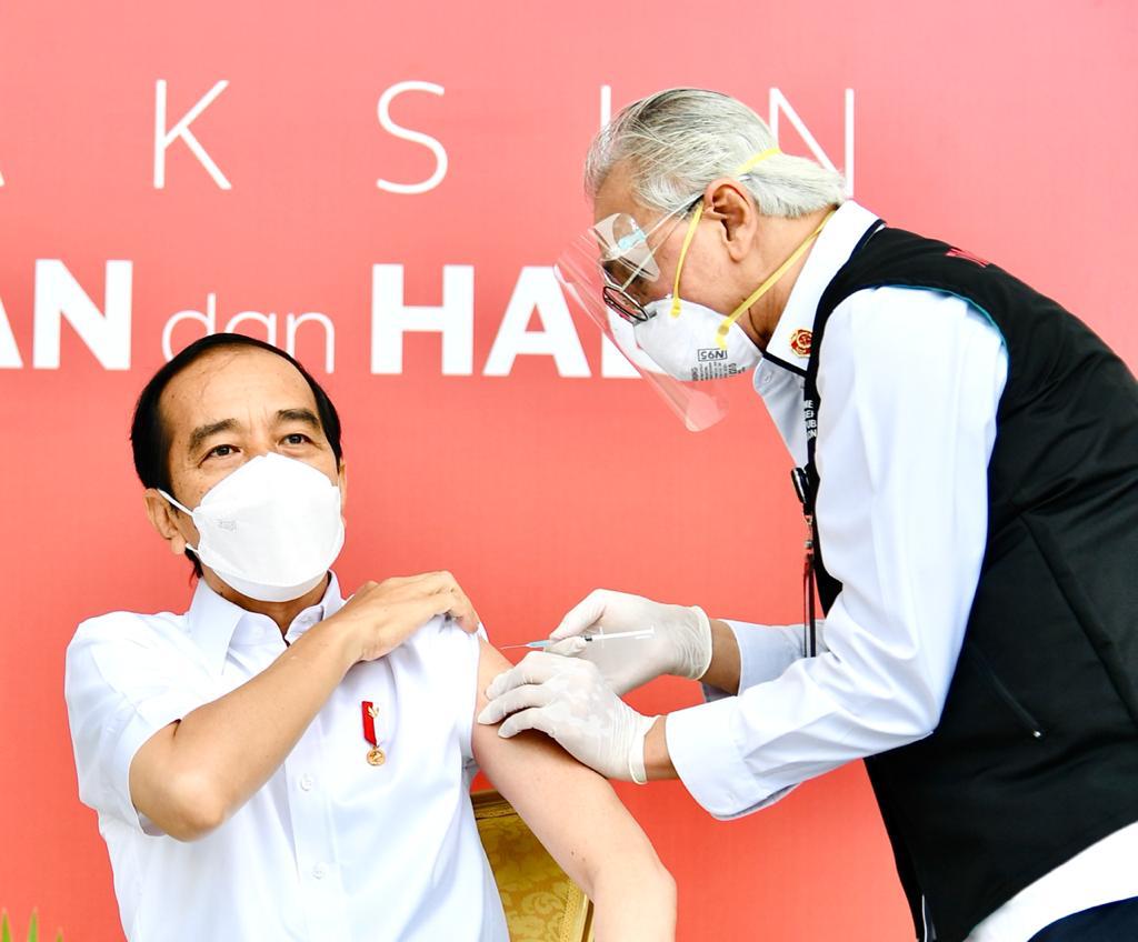 Jakarta - Presiden Joko Widodo pada hari ini, Rabu, 13 Januari 2021, di Istana Merdeka, Jakarta, menjadi orang pertama yang menerima vaksin dalam program vaksinasi massal secara gratis di Indonesia.