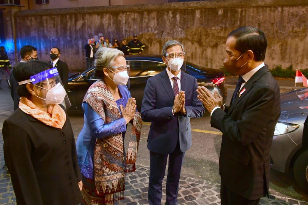 Selain itu, tampak menyambut juga Duta Besar RI untuk Vatikan Laurentius Amrih Jinangkung, DCM KBRI Roma Leffianna Hartati Ferdinandus, pejabat KBRI Roma dan KBRI Vatikan, serta General Manager hotel tersebut.