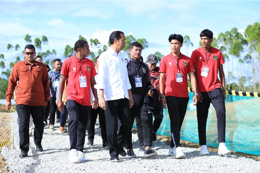Kaltimkita.com, NUSANTARA- Presiden Joko Widodo (Jokowi) meninjau perkembangan pembangunan Training Center (TC) PSSI di Ibu Kota Negara Nusantara (IKN), Penajam Paser Utara, Kalimantan Timur, pada Rabu (17/1/2024).