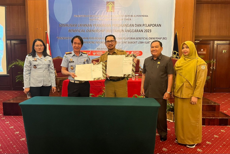 Kaltimkita.com, BALIKPAPAN - Pemerintah Kota Balikpapan bersama Kantor Wilayah Kementerian Hukum dan HAM Kalimantan Timur telah menandatangani nota kesepahaman untuk kerjasama terkait perlindungan dan pemanfaatan kekayaan intelektual, Selasa (16/5/2023) di Hotel Grand Senyiur.