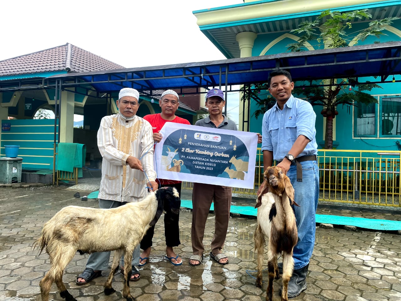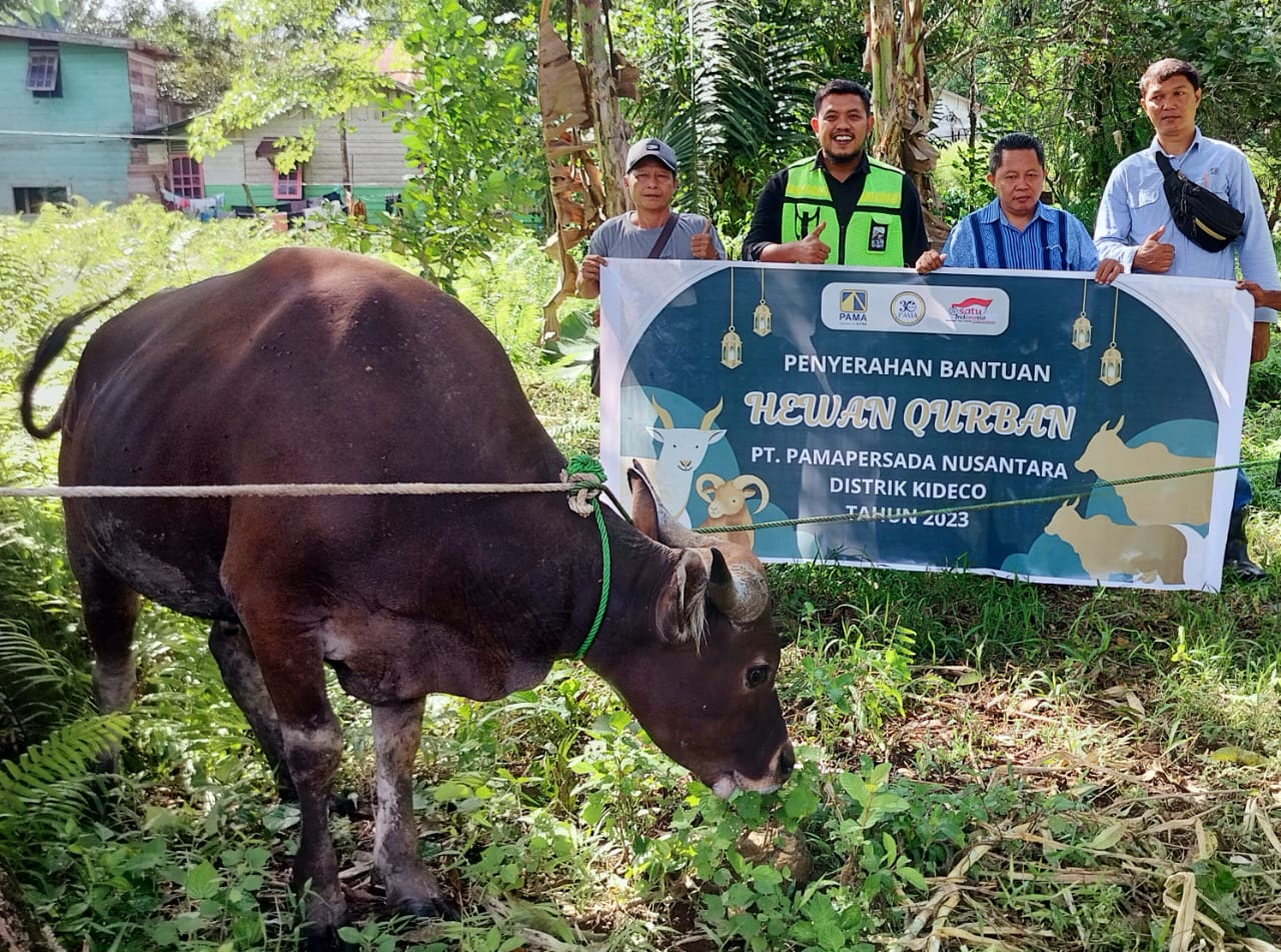 KaltimKita.com, TANA PASER - PT Pamapersada Nusantara Distrik Kideco (Pama Kide) menyerahkan hewan kurban kepada masyarakat di sekitar ring satu perusahaan di Kecamatan Muara Samu dan Batu Sopang. Ada 11 ekor sapi dan 12 ekor kambing diserahkan ke desa ring satu dan mitra eksternal, selain itu terdapat lima ekor sapi dan empat ekor kambing dari karyawan PAMA terkumpul.