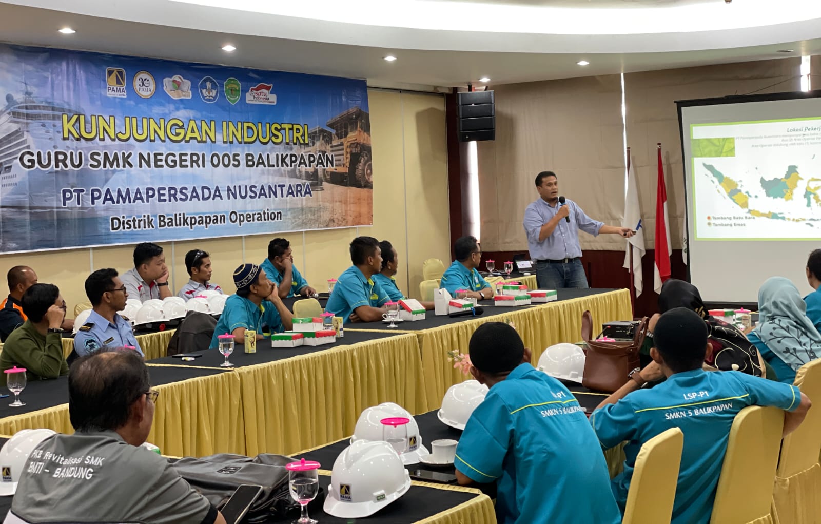 Kaltimkita.com, BALIKPAPAN – PT Pamapersada Nusantara Distrik Balikpapan Operation (PAMA BPOP) menerima kunjungan 25 guru SMK Negeri 5 Balikpapan, Jumat (21/7). Kedatangan para tenaga pendidik tersebut sebagai program menjalin kemitraan antara dunia pendidikan sebagai penghasil lulusan peserta didik kepada perusahaan selaku pengakomodir sumberdaya manusia di dunia industri.