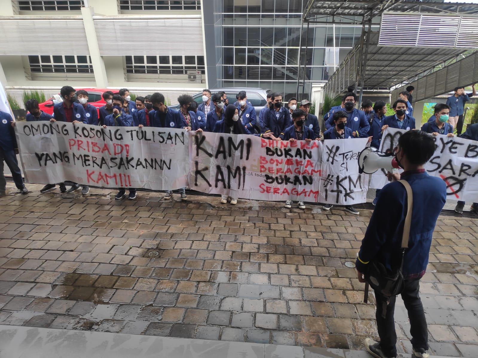 KaltimKita.com, BALIKPAPAN- Puluhan mahasiswa Institut Teknologi Kalimantan (ITK) menggelar aksi di depan gedung utama kampus ITK, Senin (9/5/2022). Aksi tersebut merupakan bentuk kekecewaan mahasiswa terhadap postingan Prof.Budi Santosa Purwakartiko yang merupakan Rektor ITK.