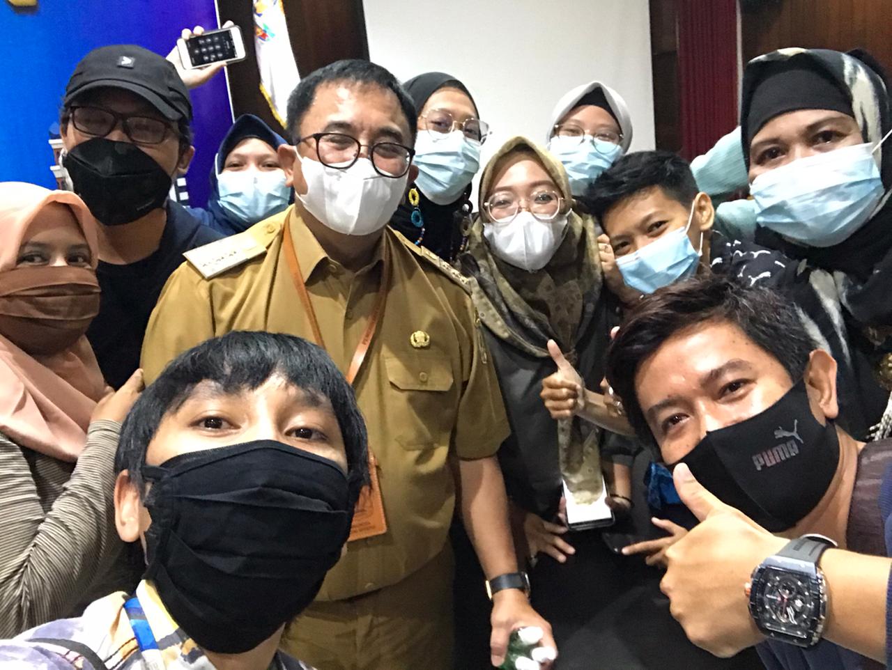 Rizal Effendi swafoto bersama awak media, sebagai tanda kenang-kenangan sebagai orang yang pernah menjadi target perburuan berita