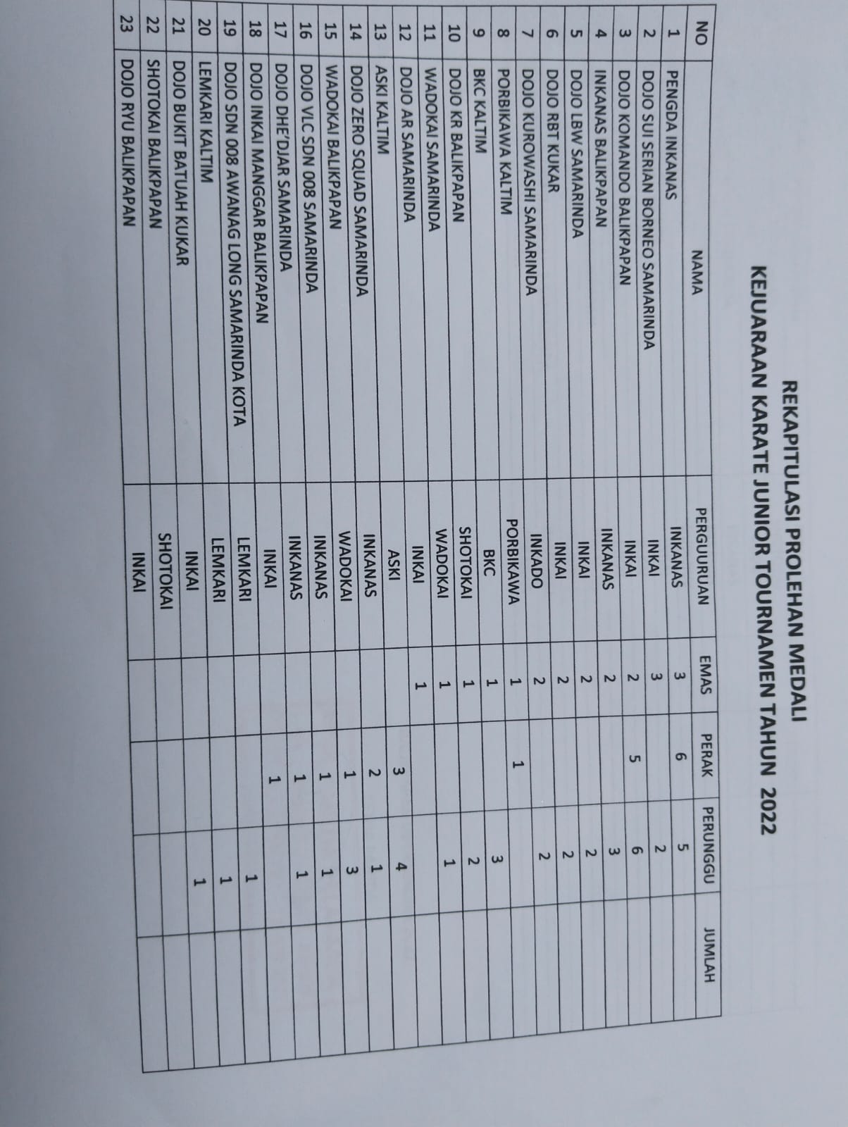KaltimKita.com, BALIKPAPAN - Inkanas Kaltim sukses meraih juara umum dalam Kejuaraan Daerah (Kejurda) Junior Karate di Balikpapan. Total 3 emas, 6 perak dan 5 perunggu berhasil diraih yang berlangsung di Atrium Plaza Balikpapan, Sabtu (10/12/2022).
