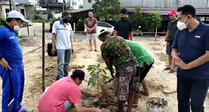 AMANKAN FASUM: Warga RT 34 saat mengamankan lahan fasum dengan melakukan gerakan penghijauan.