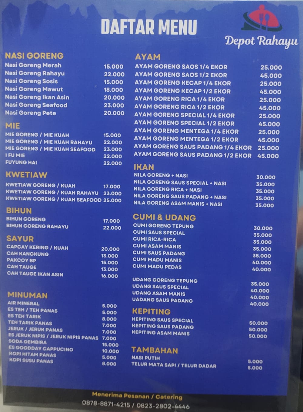 Nah satu, UMKM kuliner yang pasti bikin ketagihan dengan cita rasanya yang khas. Namanya Depot Rahayu. Letaknya sangat strategis di Jalan Sepinggan Baru, RT 25 Sepinggan, Kecamatan Balikpapan Selatan. Berada satu jalur masuk menuju Pasar Sepinggan. Tepatnya pas di samping Konter HP Queen Cell dan Toko Emas H Yunus. "Alhamdulillah, sudah buka sejak tiga minggu lalu. Alhamdulillah juga, selalu ramai pengunjung," kata Zulfikar SH, pengelola Depot Rahayu Sepinggan kepada media ini, Selasa (29/11/2022) malam.