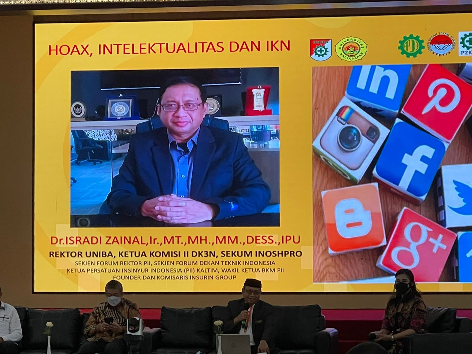 Isradi yang saat ini masih menjabat Sekjen Forum Dekan Teknik Indonesia (FDT) yang membawakan materi Hoax, Intelektua dan IKN dalam kaitannya dengan ruang siber (cyber space) menyatakan bahwa perkembangan teknologi dan informasi turut menunjang munculnya 'hoax' yang bisa berdampak negatif terhadap masyakat, bangsa dan negara yang berdasarkan hasil penelitian bersumber dari media sosial 90,3%, aplikasi chat 62,8%, situs web 34,9%,televisi 8,7 %, media cetak 5%,dll.