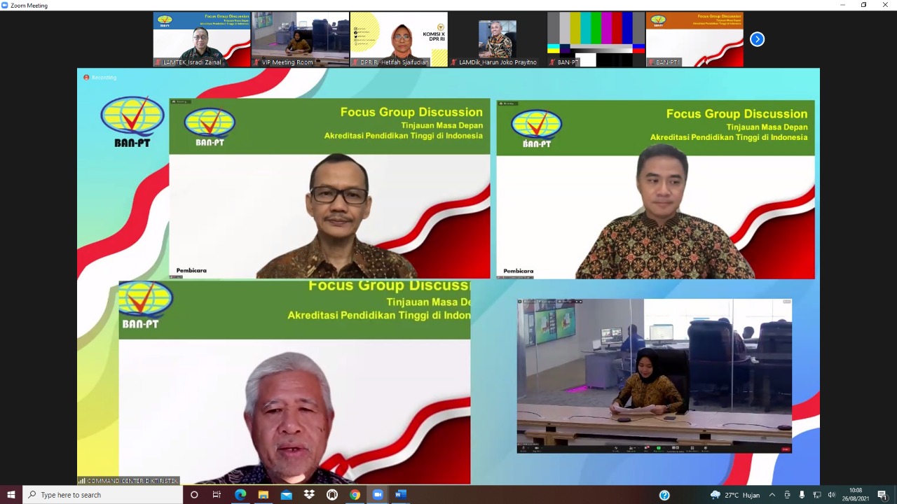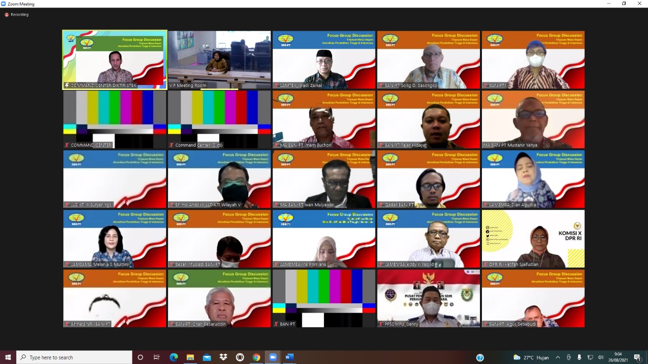 Acara diawali laporan ketua Majelis Akreditasi BAN PT, lalu Direktur Eksekutif BAN PT, dilanjutkan dengan arahan Mendikbudristek Nadiam Anwar Makarim, Dirjen Diktiristek Nizam, Dirjen Diksi Wikan.(25/8/2021).