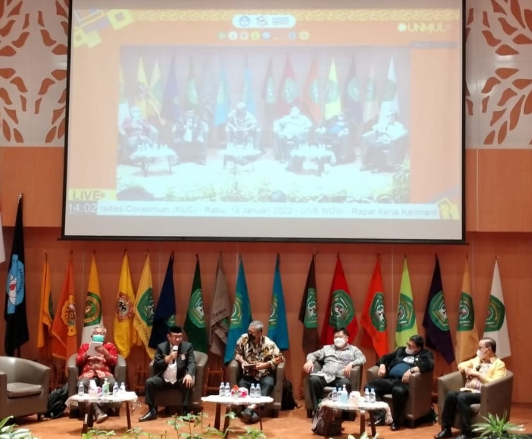 KaltimKita.com - Rektor Unmul Prof Masjaya dan Rektor Uniba Dr. IZ didampingi sejumlah Rektor Pendiri KUC seperti Universitas Pontianak, Universitas Lambang Mangkurat, Universitas Borneo Tarakan, Universitas Tanjung Pura, dan Politeknik Negeri Pontinak. menjadi Pembicara terkaitt IKN di sela sela Rapat Kerja Kalimantan University Consortium (KUC) yang dilaksanakan di Universitas Mulawarmam (Unmul)(19/1/2022)