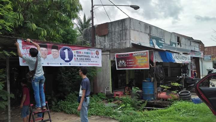 Terpasang keren spanduk nomor urut 1 cabup/cawabup MaKin Kutim, menggugah dukungan keluarga penghuni rumah langsug pilih MaKin 9 Desember 2020 mendatang Bupati dan Wabup Kutim