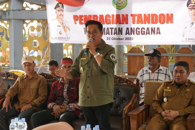 Kaltimkita.com, Kutai Kartanegara – Wakil Bupati (Wabup) Kutai Kartanegara (Kukar) Rendi Solihin didampingi Asisten Ekonomi dan Pembangunan Wiyono dan Camat Muara Jawa Safrudin, menyerahkan bantuan Tandon kepada masyarakat Kelurahan Muara Kembang Kecamatan Muara Jawa, Selasa (25/10).