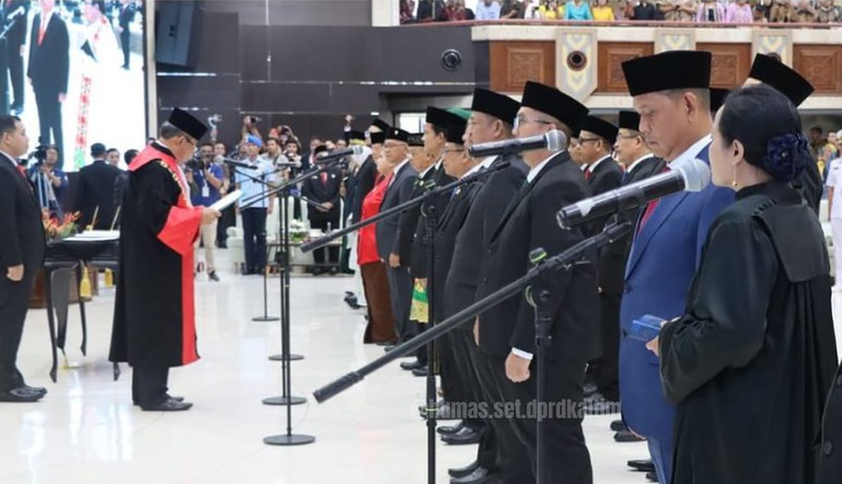 Kaltimkita.com, SAMARINDA- Sebanyak 55 orang resmi dilantik menjadi Anggota DPRD Provinsi Kalimantan Timur masa jabatan 2024 – 2029, Senin (2/9/2024). Dibimbing Ketua Pengadilan Tinggi Kaltim Nyoman Gede Wirya seluruh anggota dewan mengucapkan sumpah/janji sebagai Anggota DPRD Kaltim dibawah kitab suci sesuai agamanya masing-masing.