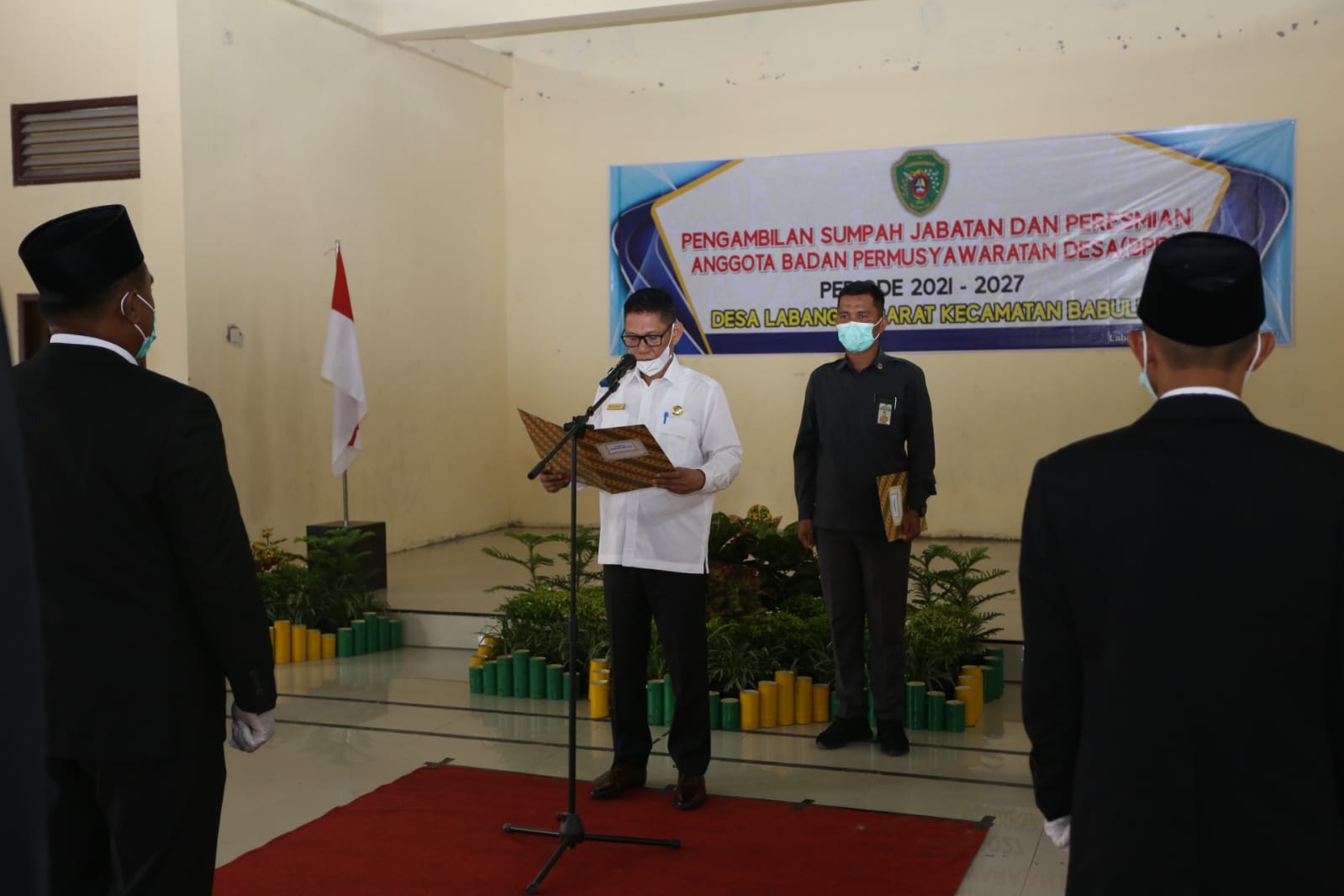 Kaltimkita.com, PENAJAM – Tujuh anggota Badan Permusyawaratan Desa (BPD) Desa Labangka Barat priode Tahun 2021-2027 resmi dilantik. Dalam pengambilan sumpah janji jabatan ini dipimpin langsun oleh Plt. Sekretaris Daerah Kabupaten Penajam Paser Utara (PPU) Muliadi, yang berlangsung di Gedung Serba Guna Desa Labangka Barat Kecamatan Babulu, Rabu, (22/9/2021).