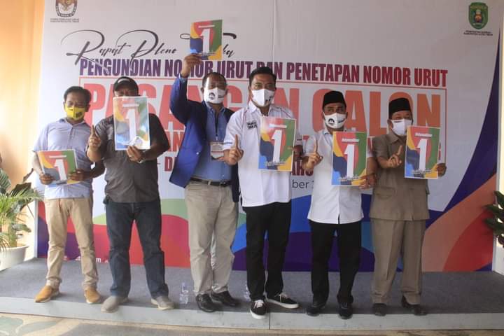 Tim Pemenangan Nasruddin bersama Wakil Ketua II DPRD Kutim dari NasDem Arfan, SE.,M.Si dan dewan lainnya kawal prosesi simbolis pengundian dan pencabutan nomor urut 1 kepada pasangan cabup/cawabup Kutim Mahyunadi Kinsu