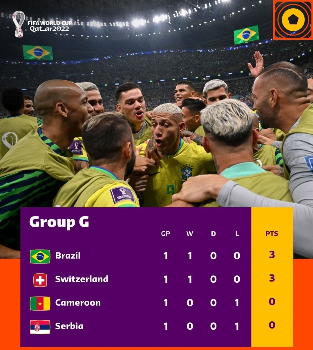 Poin Brasil sama dengan Swiss di urutan kedua tapi unggul selisih gol. Sementara Serbia di dasar klasemen dengan belum meraih angka. (det/bie)