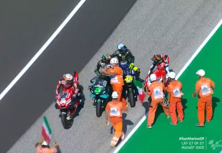 Di lintasan Misano usai finis, kamera juga menangkap adegan istimewa. Ada Valentino Rossi, yang akhirnya finis keempat dalam balapan, serta-merta memberikan ucapan selamat buat Franco Morbidelli. Hal ini mengingatkan kepada adegan serupa di MotoGP Ceko 2020 lalu, ketika Morbidelli meraih podium pertamanya di MotoGP.