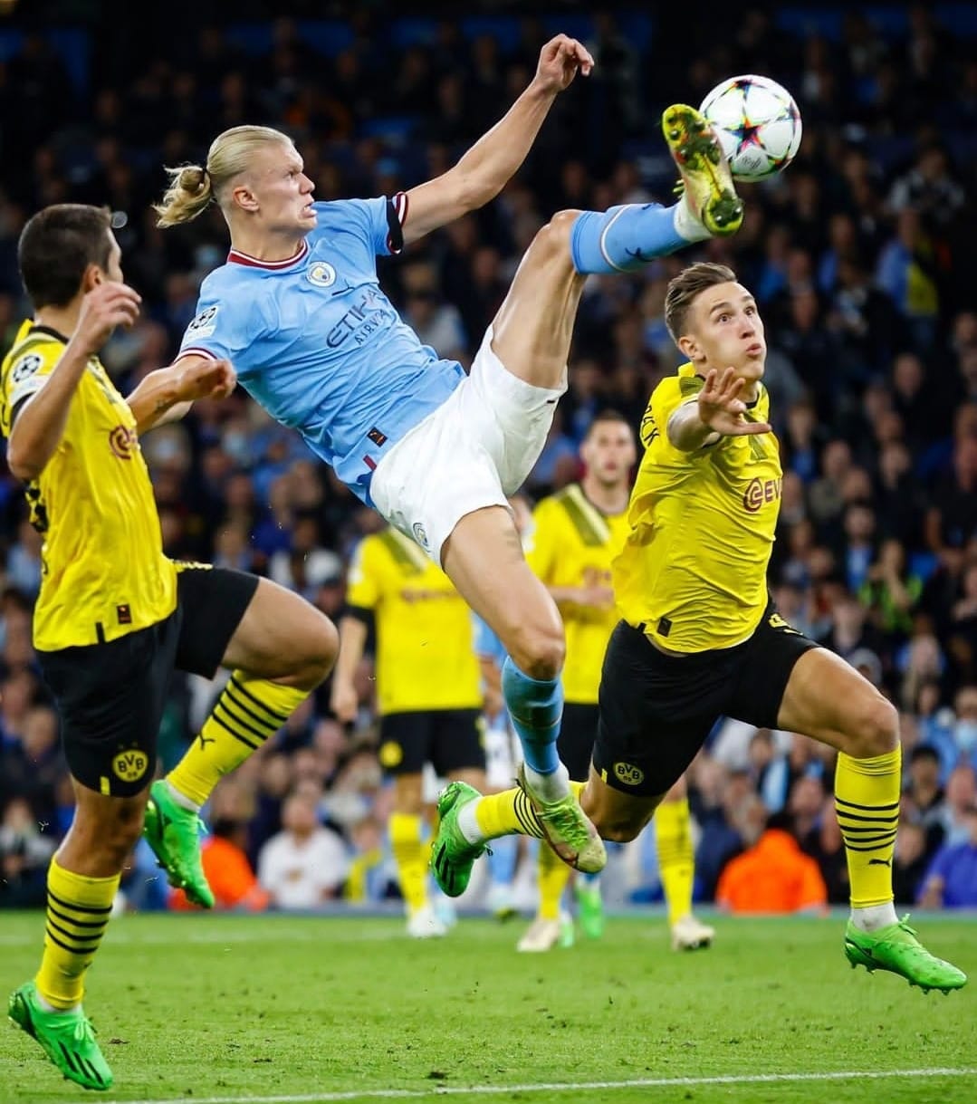 Manchester City menundukkan perlawanan sengit Borussia Dortmund di laga kedua Grup G Liga Champions. The Citizens menang 2-1, dengan Erling Haaland bikin gol.