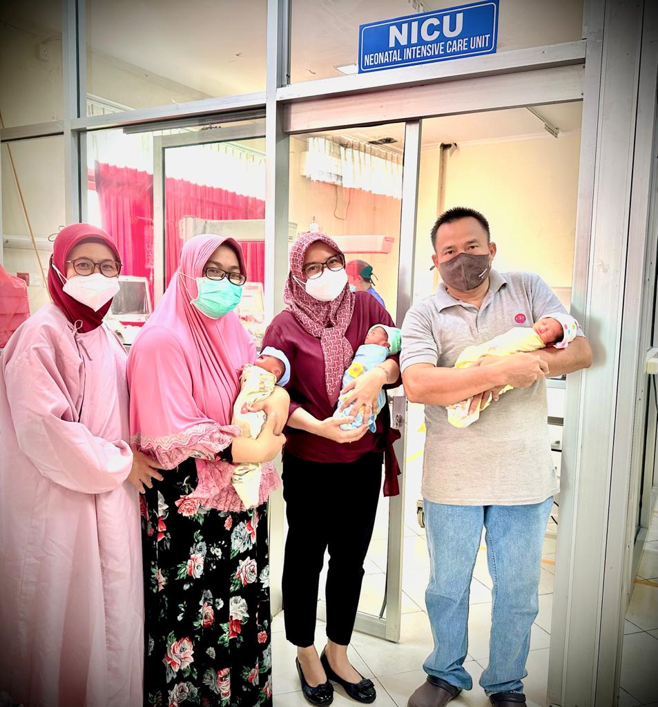 Ini merupakan pasien pertama yang diterima RSPS untuk bayi kembar tiga. dr. Ahmad Hadi Wijaya yang ikut dalam tim operasi menambahkan bahwa kondisi ketiga bayi stabil saat lahir, namun harus dilakukan perawatan inkubator dilanjutkan perawatan metode Kanguru karena berat badan masing-masing bayi kurang dari 2.500 gr (BBLR).