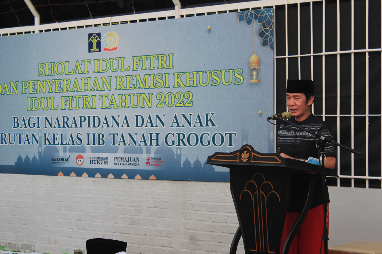 Setelah pelaksanaan Sholat Idul Fitri, acara dilanjutkan dengan Penyerahan Remisi Khusus Hari Raya Idul Fitri 1443H. Penyerahan remisi secara simbolis diberikan oleh Kepala Kantor Wilayah Kemenkumham Kaltim didampingi oleh Kepala Rutan Tanah Grogot Doni Handriansyah kepada perwakilan Warga Binaan Pemasyarakatan.