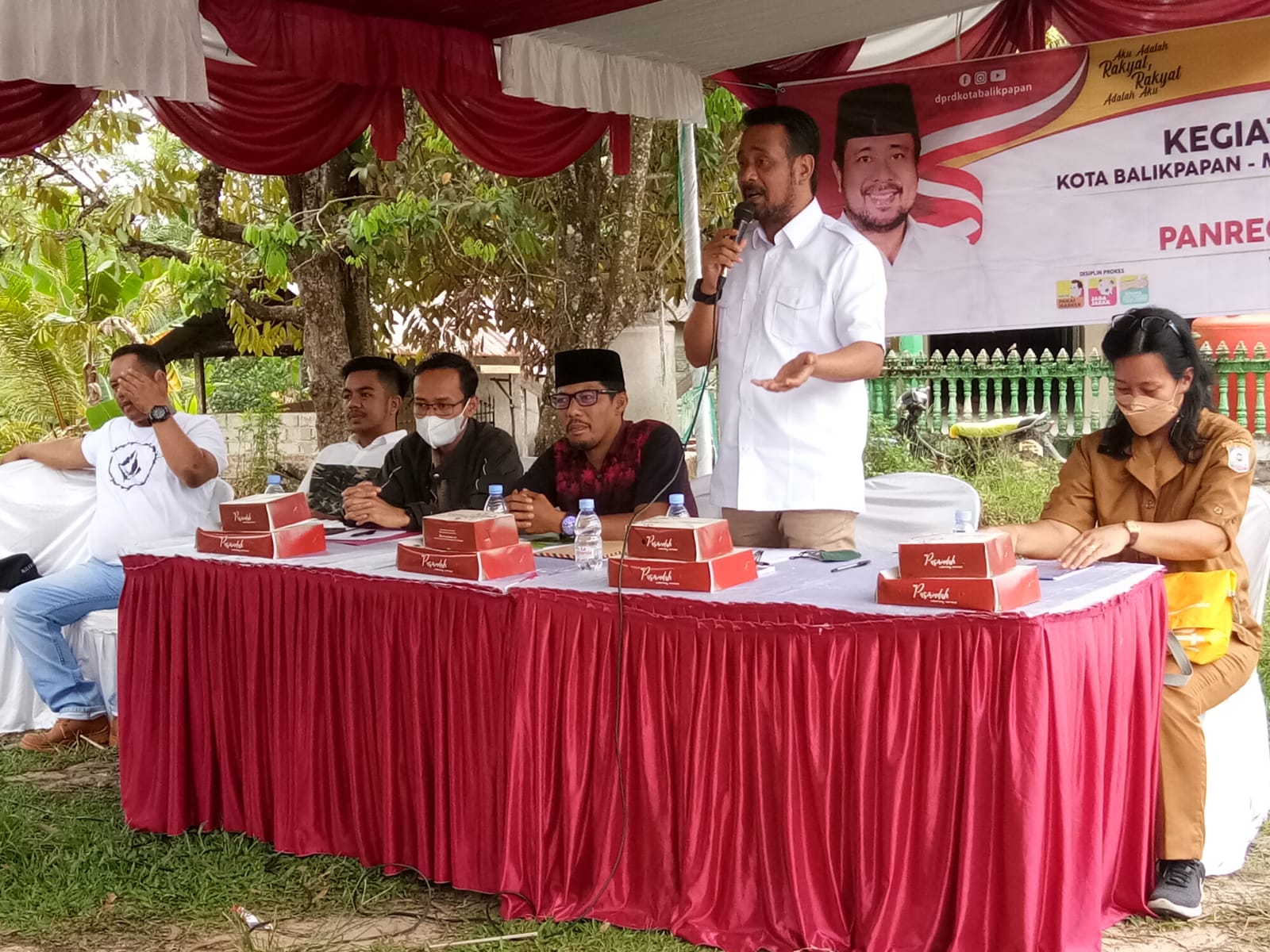 Kaltimkita.com, BALIKPAPAN - Wakil Ketua DPRD Kota Balikpapan, Sabaruddin Panrecalle, Daerah Pemilihan (Dapil) Balikpapan Timur, dari Partai Gerindra, menggelar kegiatan Reses Masa Sidang I Tahun 2022, di Jalan Gunung Binjai, RT 15, Kelurahan Teritip, Kecamatan Balikpapan Timur.