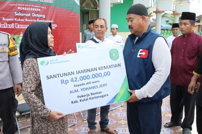 Ia juga menyerahkan santunan kematian kepada ahli waris pekerja rentan dan penyerahan bantuan bingkisan kepada kaum dhuafa.