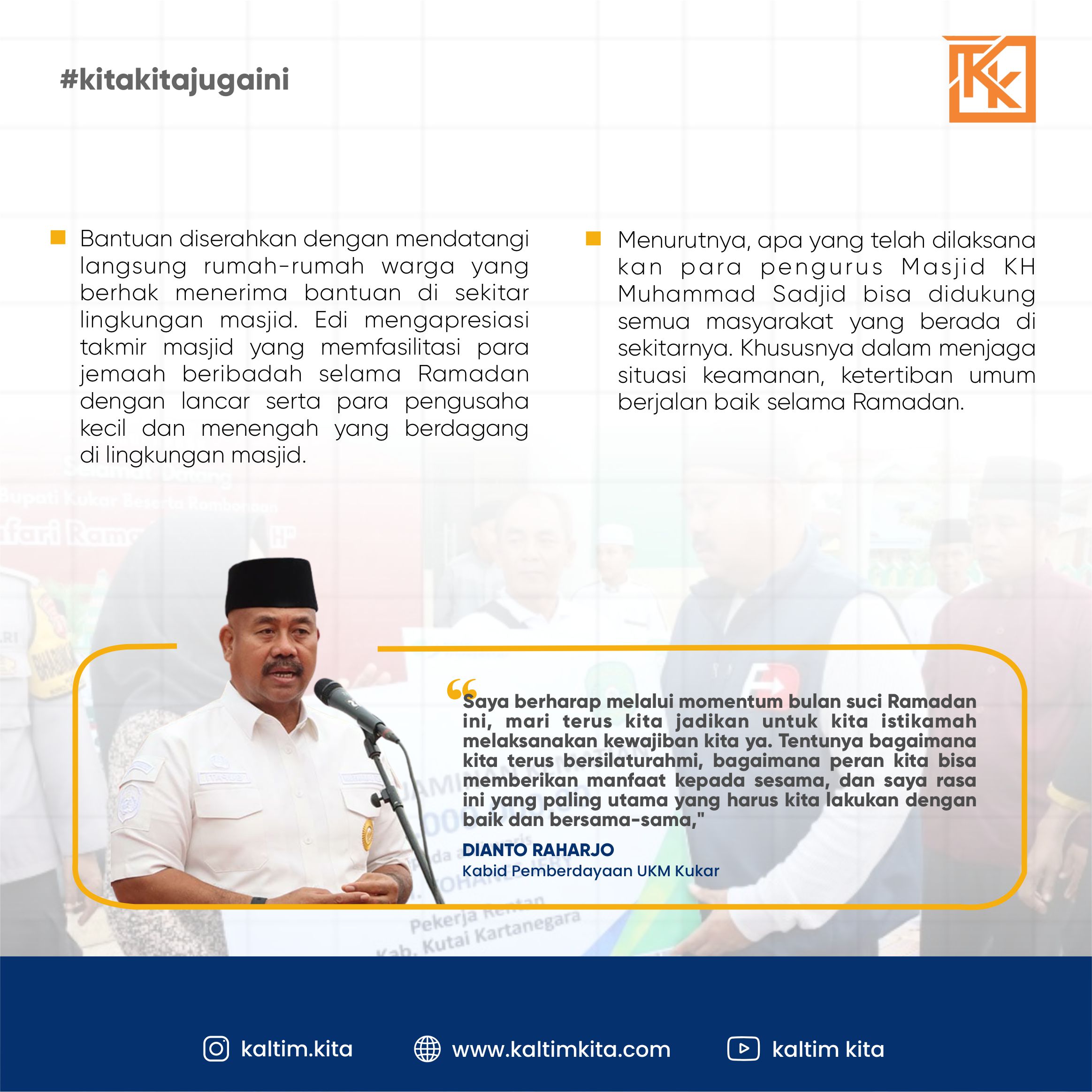 “Saya berharap melalui momentum bulan suci Ramadhan ini mari terus kita jadikan untuk kita Istiqomah melaksanakan kewajiban kita ya tentunya bagaimana kita terus bersilaturahim, bagaimana peran kita bisa memberikan manfaat kepada sesama, dan saya rasa ini yang paling utama yang harus kita lakukan dengan baik dan bersama-sama,” ujarnya.