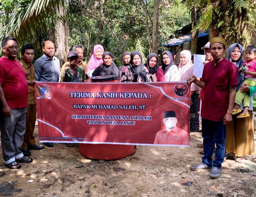 KaltimKita.com, TANA PASER - Anggota DPRD Paser Muhammad Saleh menyerahkan bantuan tandon kepada masyarakat Kecamatan Tanah Grogot. Pengadaan tandon melalui aspirasi pokok-pokok pikiran itu berjumlah 400 unit yang disebar ke berbagai desa. Diantaranya Desa Tapis, Senaken, Jone, dan Janju.
