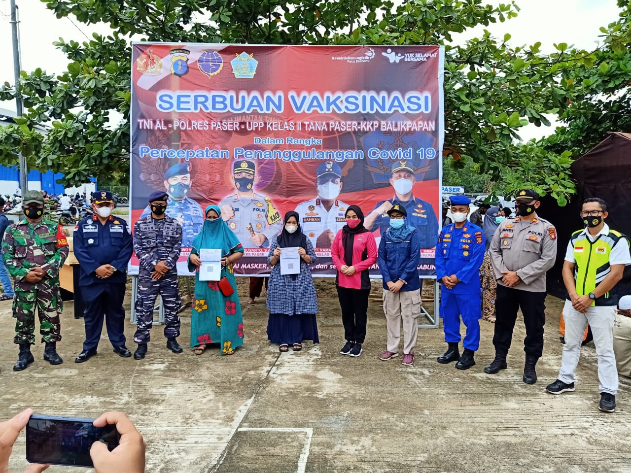 Pangkalan TNI AL (Lanal) Balikpapan, Polres Paser, KUPP Kelas II Tana Paser dan Kantor Kesehatan Pelabuhan (KKP) Balikpapan Wilayah Kerja Tanah Grogot melaksanakan serbuan vaksin, pembagian sembako dan khitanan massal bagi masyarakat Desa Pondong Kecamatan Kuaro Kabupaten Paser atau sekitar pelabuhan Pondong.