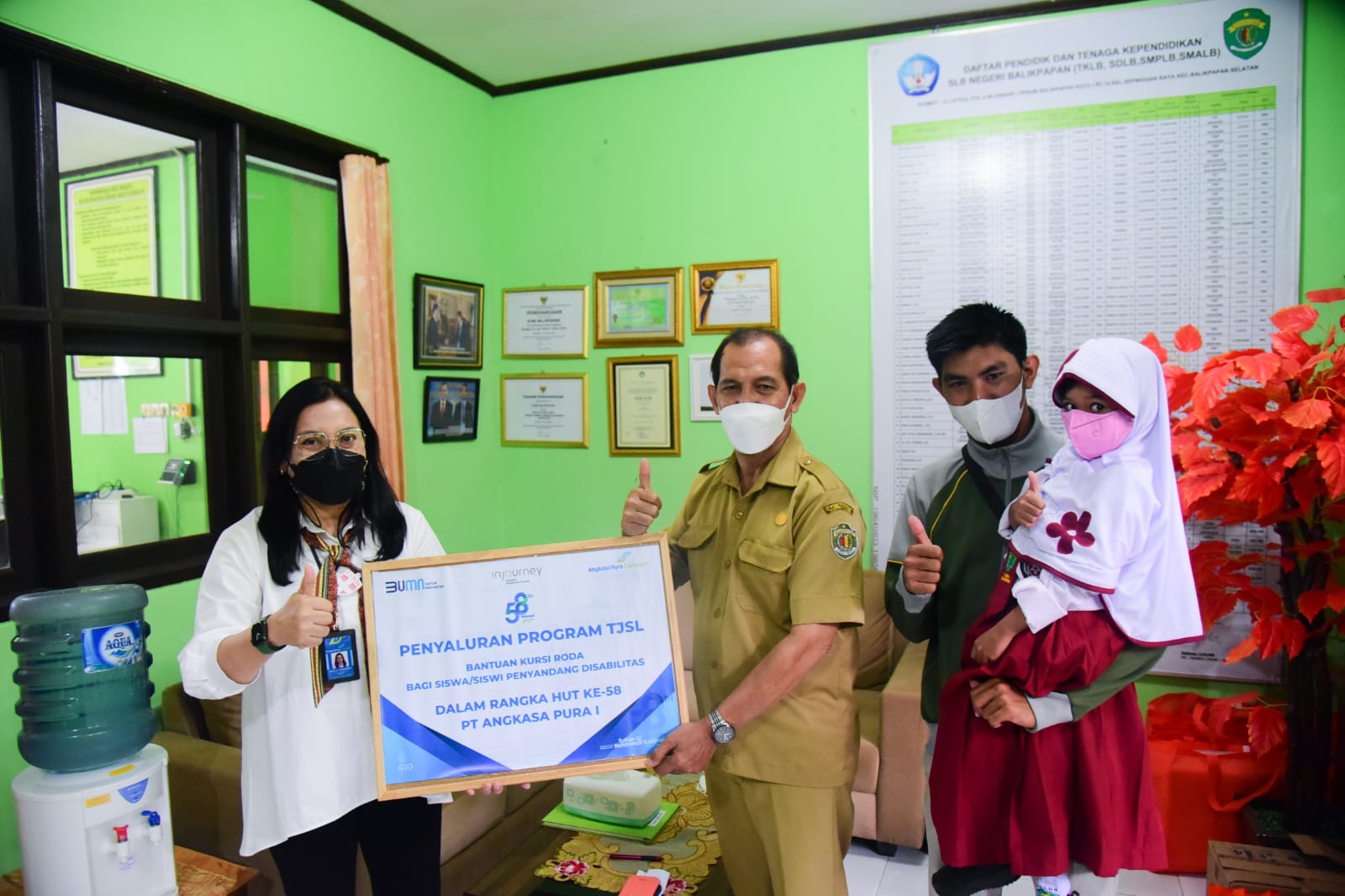 Kaltimkita.com, BALIKPAPAN - Dalam rangka memperingati Hari Ulang Tahun ke-58 PT Angkasa Pura I, Kantor Cabang Bandar Udara Internasional Sultan Aji Muhammad Sulaiman (SAMS) Sepinggan Balikpapan memberikan bantuan kepada Sekolah Luar Biasa berupa 5 kursi roda dan sebuah alat bantu jalan.