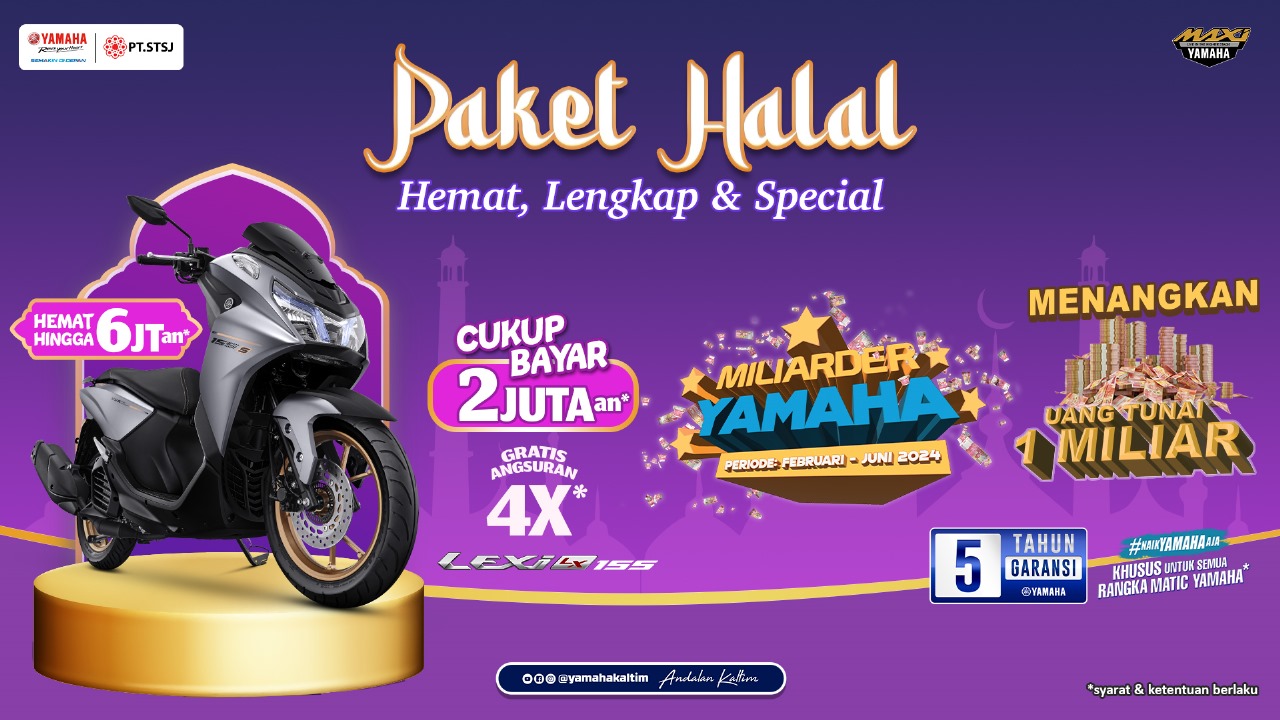 “Ya, dalam bulan Ramadan ini sekaligus menyambut lebaran ini kami dari Yamaha sudah menyiapkan promo dengan Paket “Halal” alias Hemat, Lengkap dan Spesial, karena itu buruan beli sudah!,” seru Asisten Manajer PT. Surya Timur Sakti Jatim (STSJ) Main Delaer Yamaha Kaltim, Efendy Ariadi.