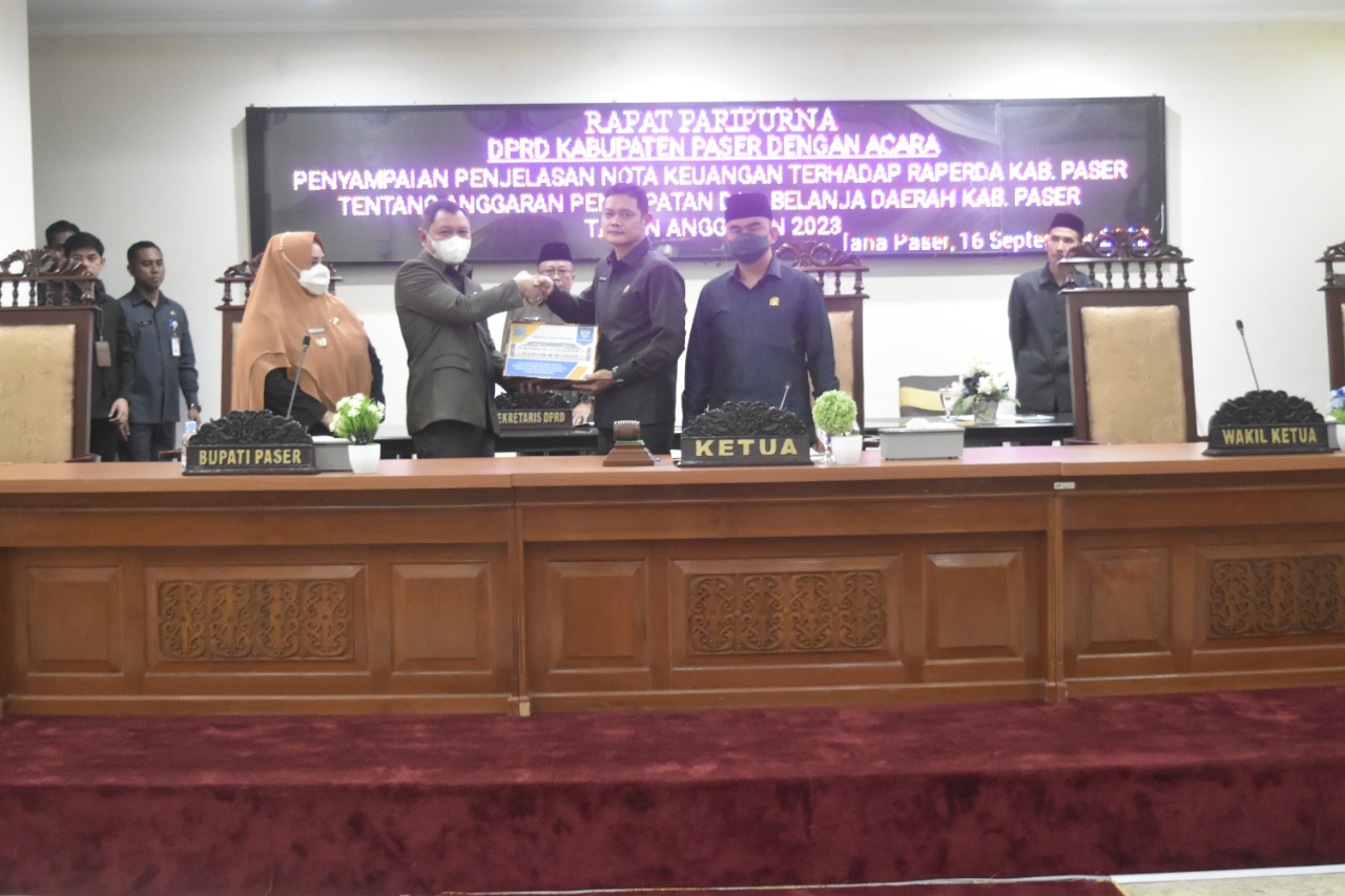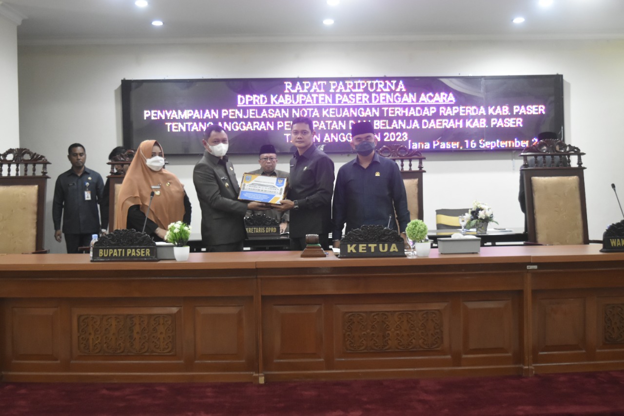 KaltimKita.com, PASER - Nota keuangan Anggaran Pendapatan dan Belanja Daerah (APBD) Tahun Anggaran (TA) 2023 telah selesai dan di disempurnakan dalam paripurna DPRD Paser. Jum'at (16/9/2022).