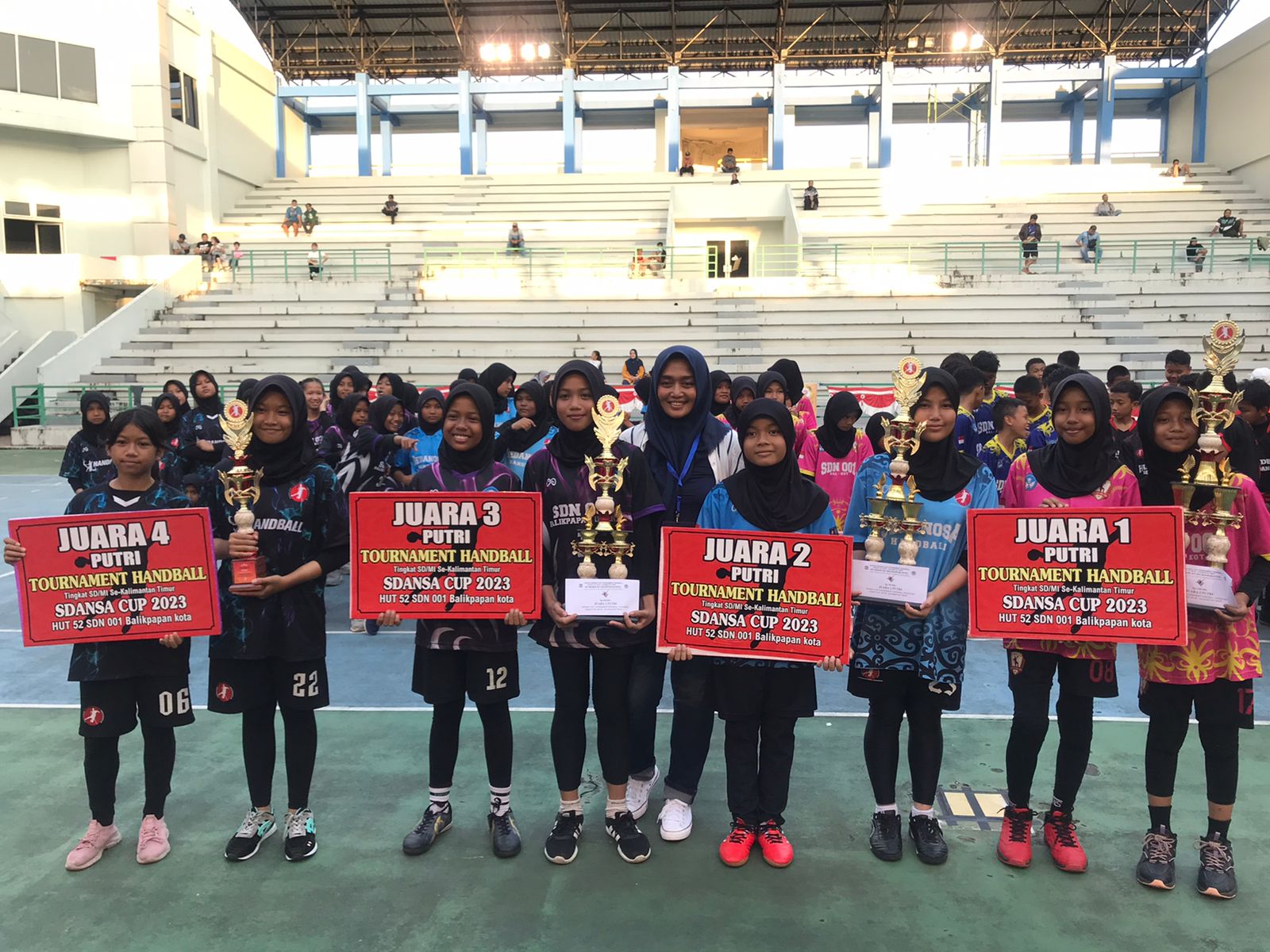 KaltimKita.com, BALIKPAPAN - SDN 001 Balikpapan Kota masih dinobatkan sebagai raja di cabor bola tangan. Kenapa tidak, untuk kesekian kalinya sukses menyandingkan gelar juara. Kali ini dalam gelaran yang dilaksanakan menyambut hari jadi sekolah ke 52 tahun, Turnamen Bola Tangan se-Kaltim bertajuk Sdansa Cup 2023 menjadi miliknya.