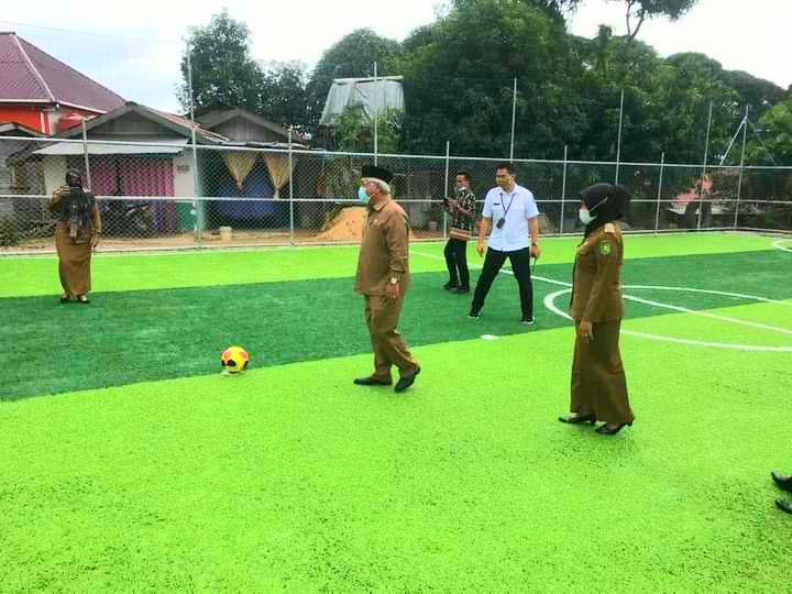 Kaltimkita.com, SANGATTA – Peresmian lapangan futsal di Kecamatan Sangatta Selatan Kabupaten Kutai Timur, Senin (28/12)2020 ditandai penendangan bola pertama oleh Sekretaris Kabupaten Kutai Timur Drs. H. Irawansyah, M.Si yang turut didampingi camat Sangatta Selatan Hasdiah Dohi.