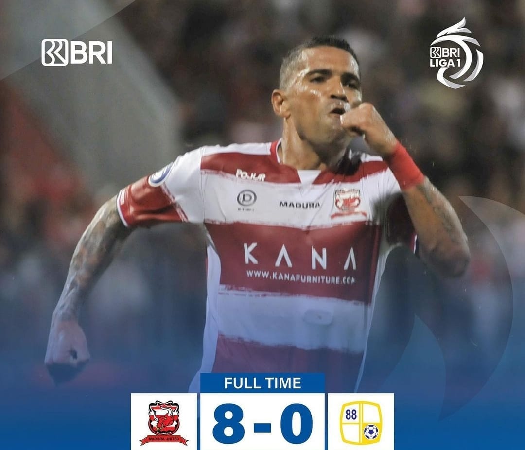 Pesta gol Madura United kemudian menggenapkan kemenangannya menjadi 8-0 di injury time. Pedro Henrique Cortes membuat gol ke delapan.