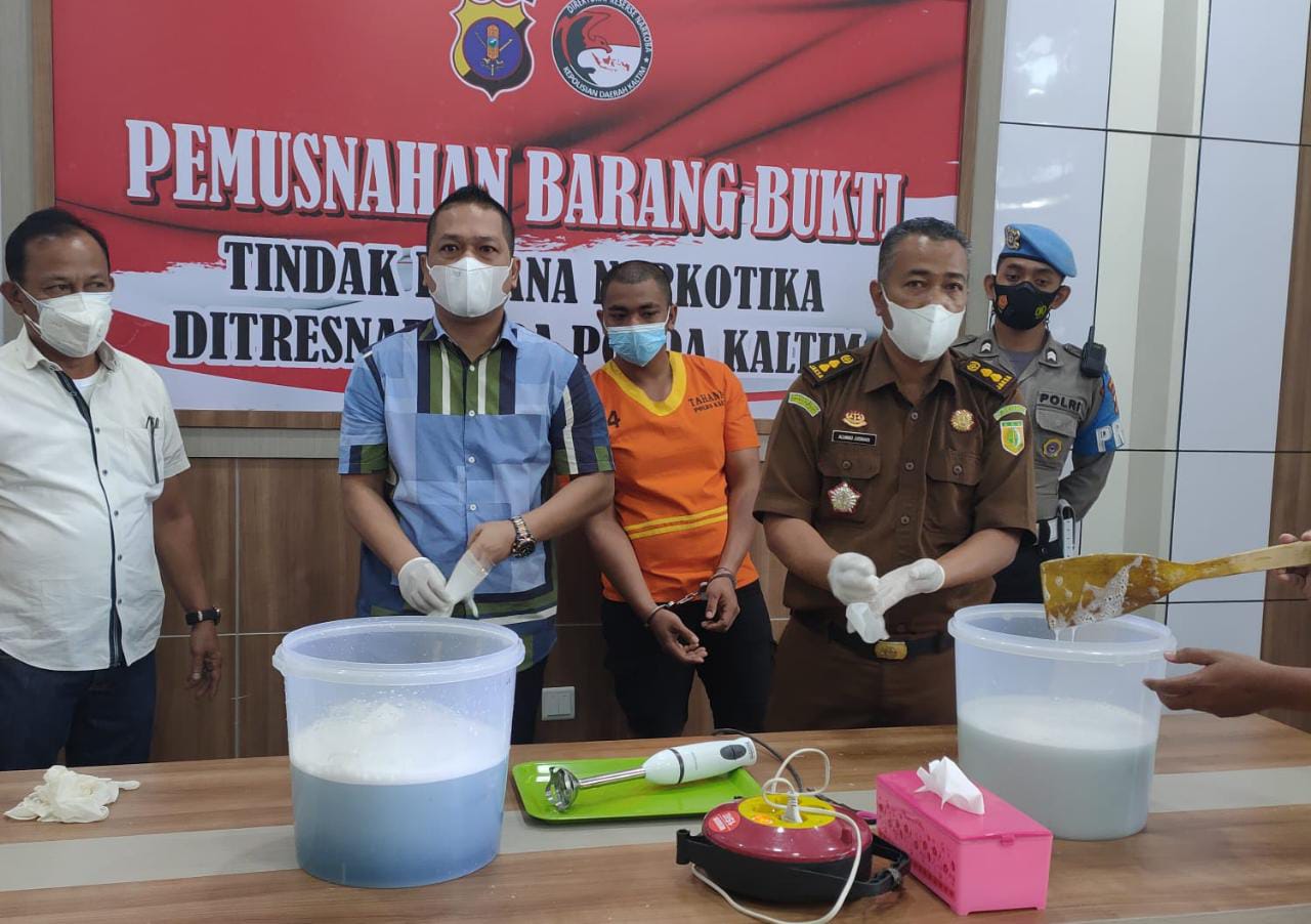Barang haram yang diamankan kali ini langsung dimusnahkan. Disaksikan Kejaksaan, tersangka, pengacara juga dari bagian internal Polda Kaltim.