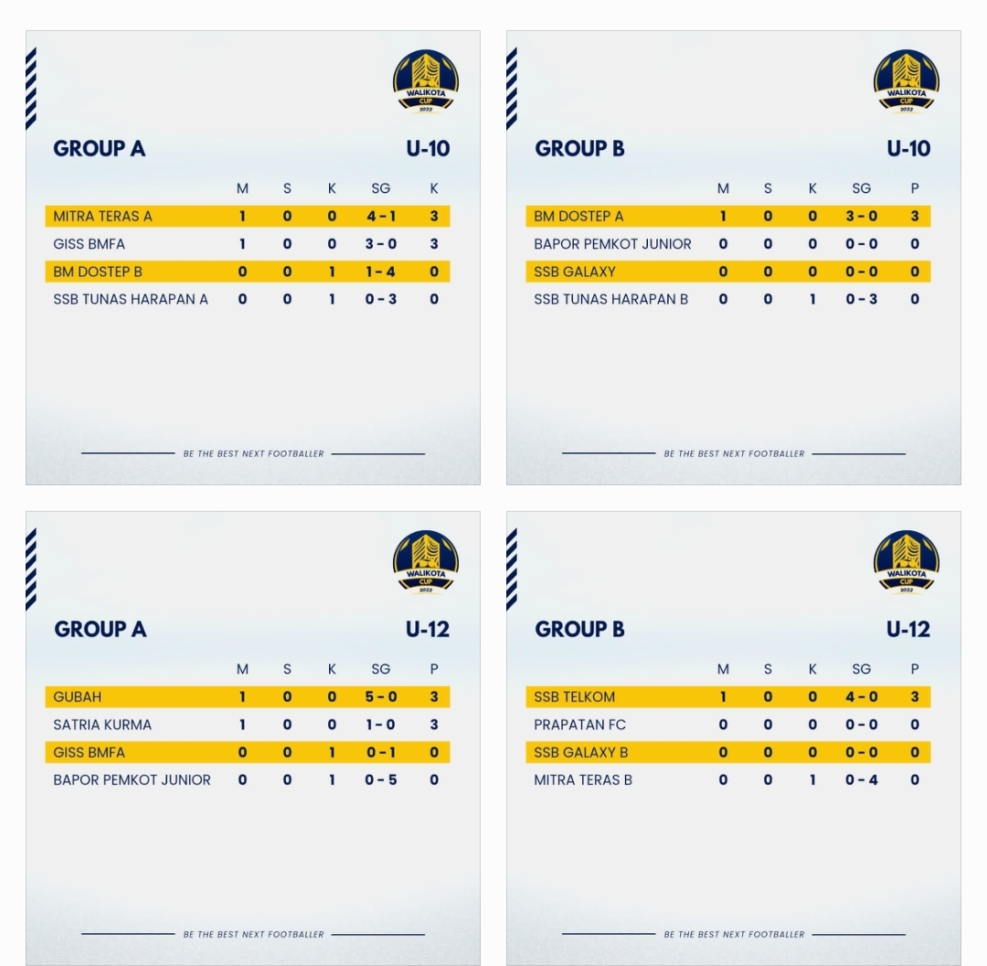 “Alhamdulillah hari pertama kegiatan Wali Kota Cup U-10 dan U-12 berjalan lancar , tidak ada opening ceremony jadi peserta langsng bertanding,” katanya.